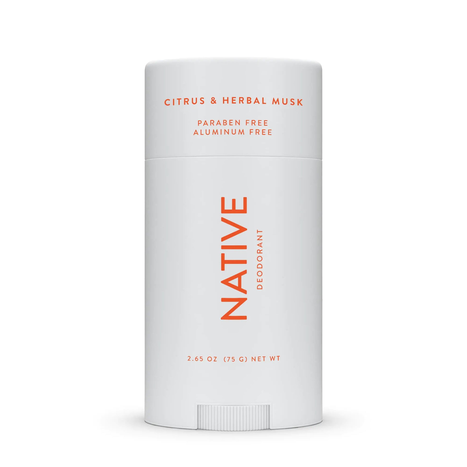 [Native Citrus & Herbal Musk - We want to help you practice safe sweats. Which is why we use ingredients you understand like coconut oil shea butter and baking soda combined with bright notes of orange and lemon to create a spicy and woodsy scent that is down to earth but still dressed-up. Aluminum Free - Native Deodorant is made without aluminum parabens phthalates and talc. Natural deodorant contains naturally derived ingredients. Effective Odor Blocking - Put your hands in the air and wave them like you - care a lot about what ingredients are going on and in your body. We care too that is why we tried thousands of ingredients before finding a recipe that feels light and fresh under your arms but provides you with lasting protection against odor. Gentle and Easy - Our solid deodorant goes on easy and feels light and fresh under your arms. It also uses safe synthetic sustainable fragrances (free of phthalates) and natural fragrances. Cruelty Free - At Native we never test our deodorant on animals only on humans who willingly volunteer to try Native Deodorant.]